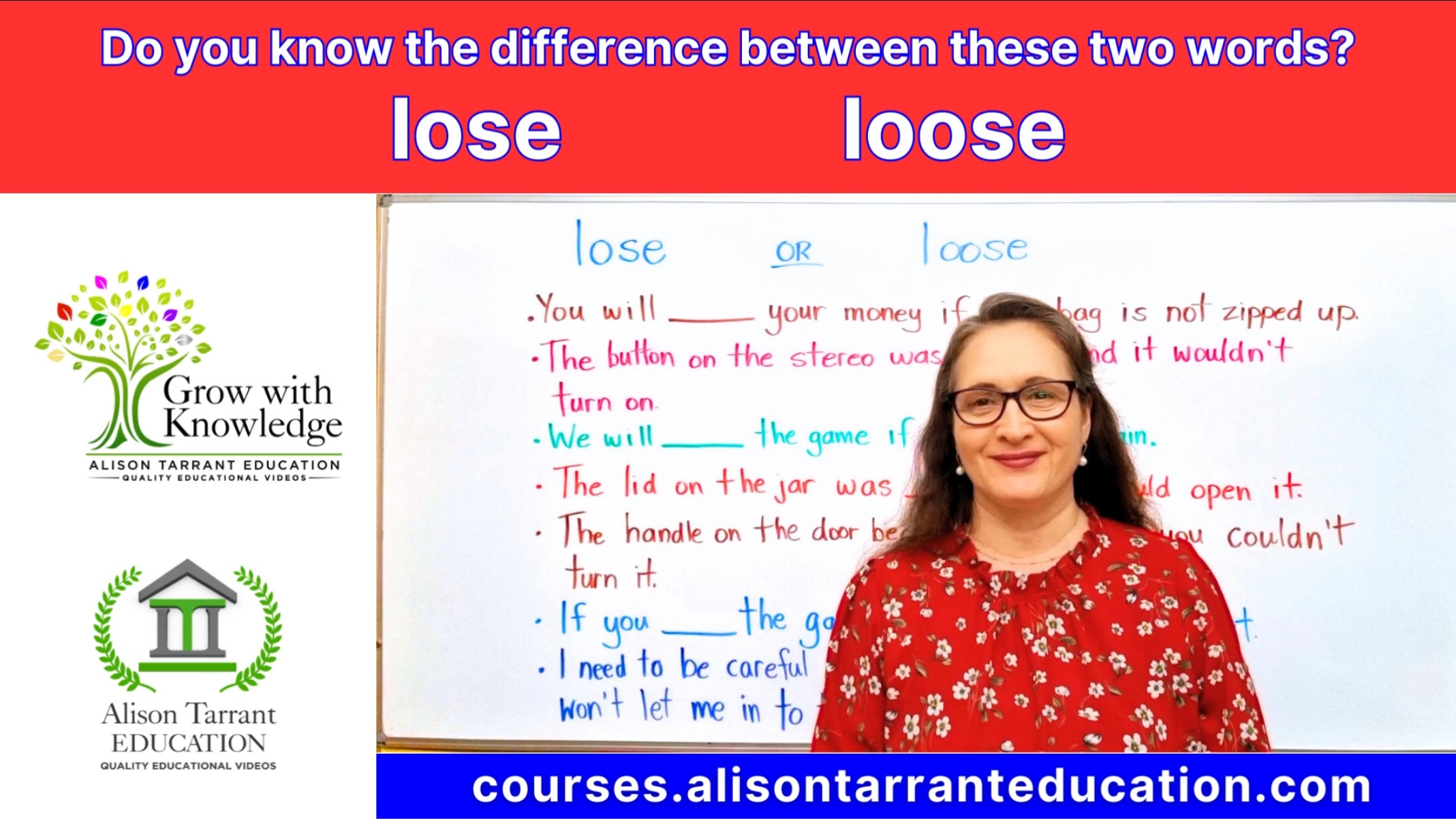 There are some words in the English language that can be quite confusing. The words LOSE or LOOSE can be quite difficult to use in sentences if you don't know what they mean. This video will help you to understand these words.