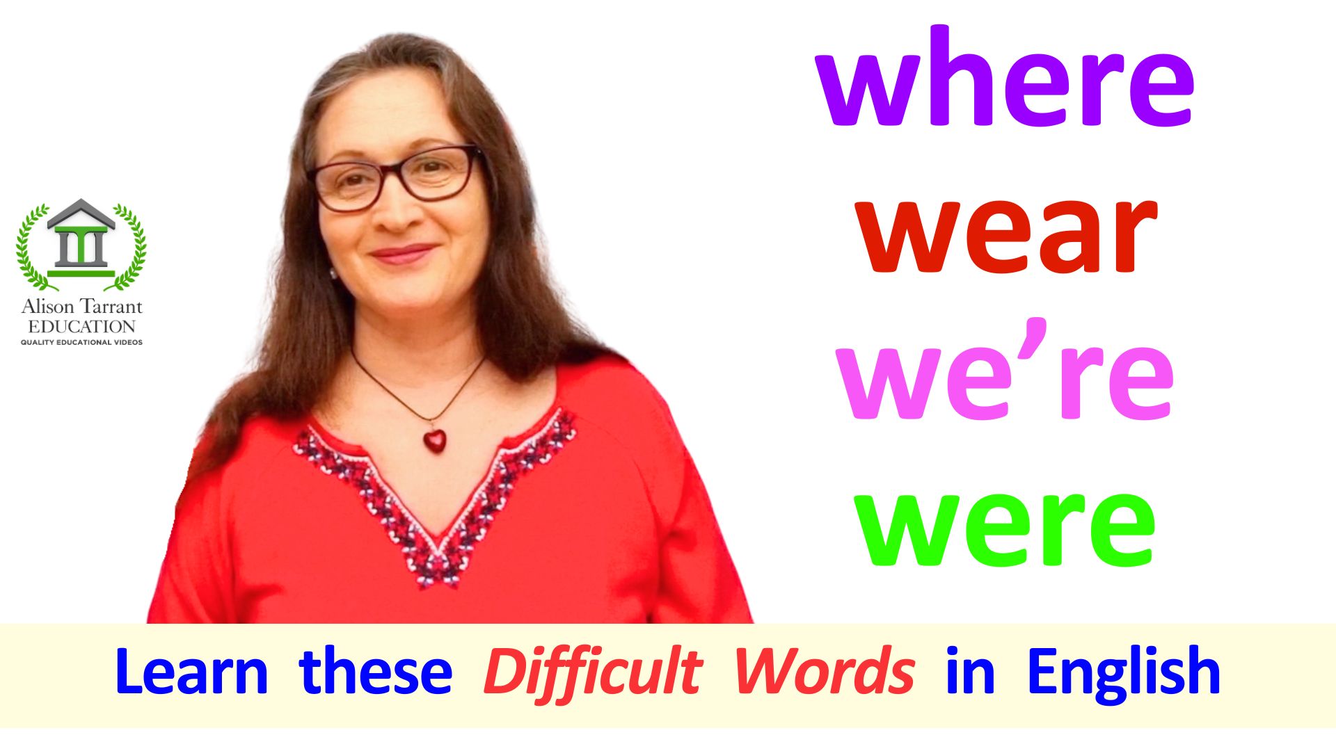 There are some words in the English language that can be quite confusing. The words WHERE, WE'RE, WEAR and WERE can be quite difficult to use in sentences if you don't know what they mean. This video will help you to understand these words.