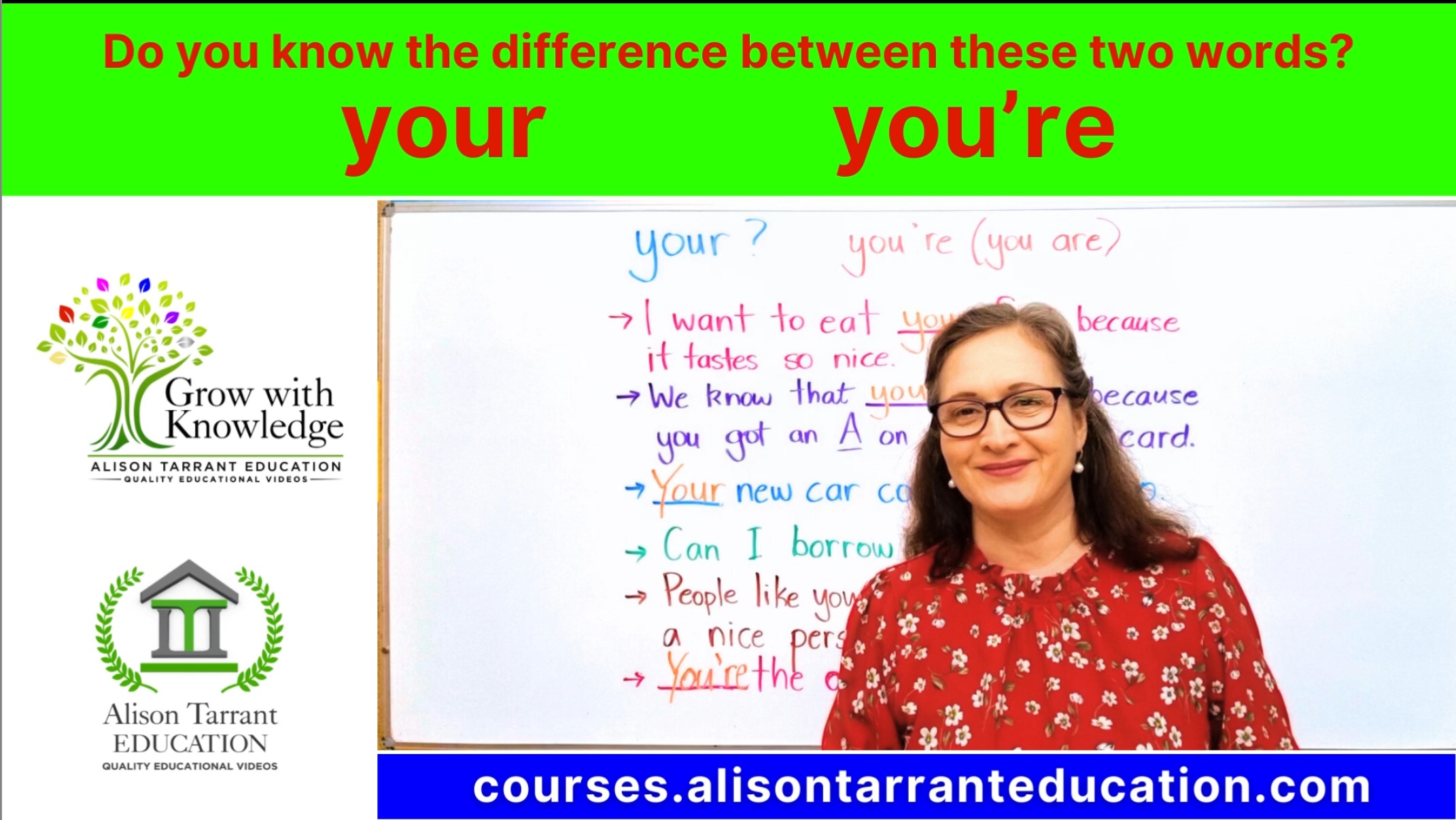 There will always be difficult words in the English language that will confuse you because they sound the same or are spelled the same. If you have a confusion with YOUR or YOU'RE, this short course will help you to understand each of these words and how to use them in a sentence when writing.